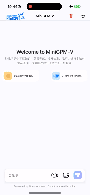 | MiniCPM-V 4.0| GPU | 9 GB | 高效的端侧视觉理解能力。 | [🤗](https://huggingface.co/openbmb/MiniCPM-V-4) [