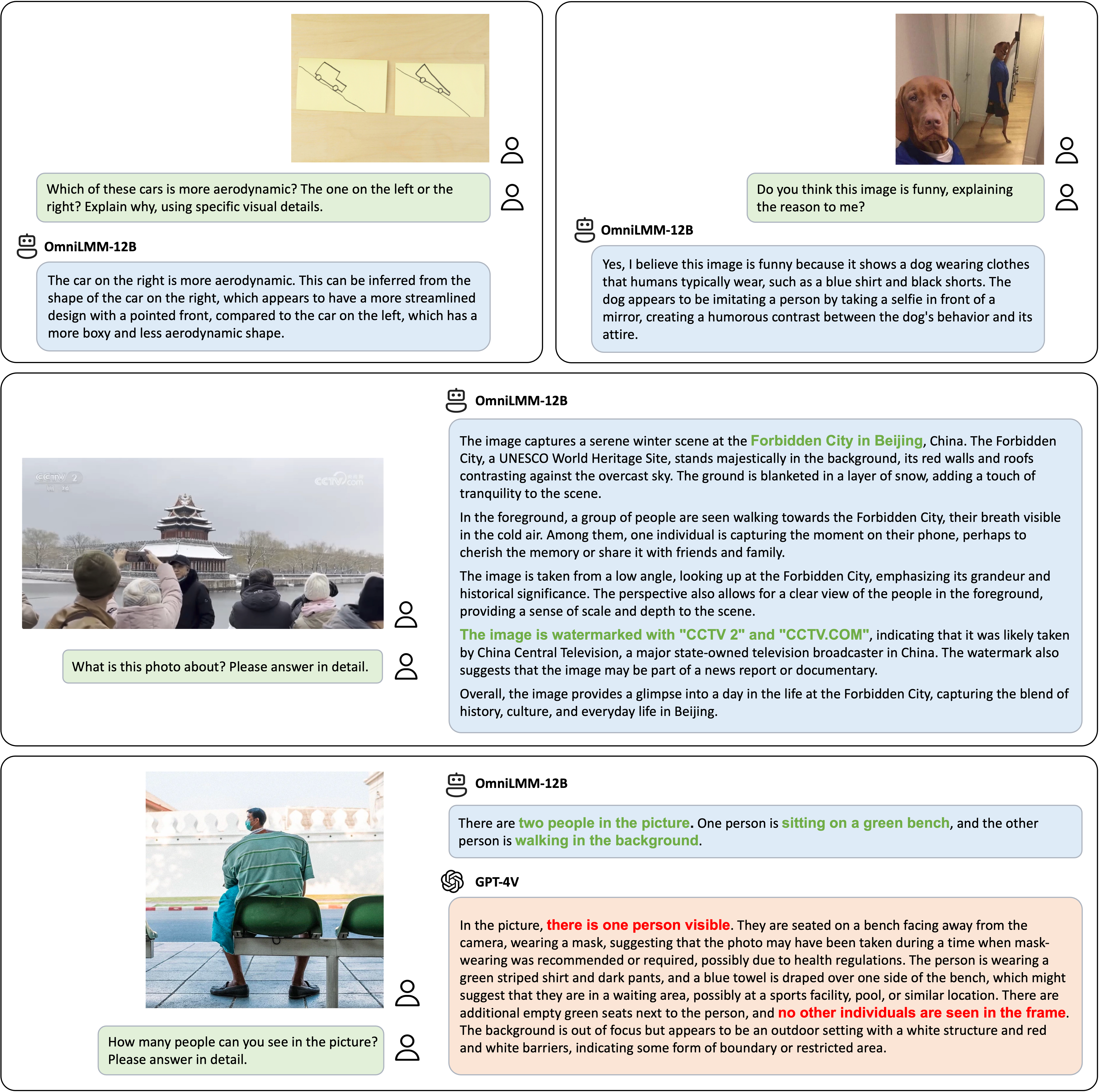 - **OmniLMM-12B**: Leading performance among comparable-sized models on multiple benchmarks.