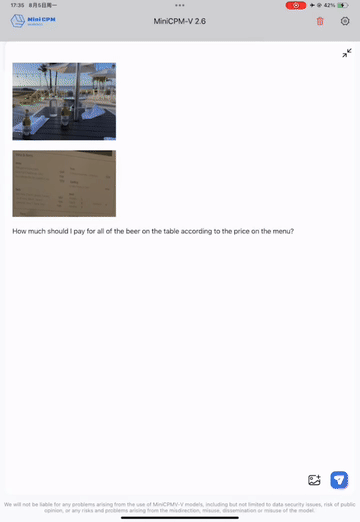 [2024.08.06] 🔥🔥🔥 We open-source MiniCPM-V 2.6, which outperforms GPT-4V on single image, multi-image and video understanding. It advances popular features of MiniCPM-Llama3-V 2.5, and can support real-time video understanding on iPad. Try it now!
